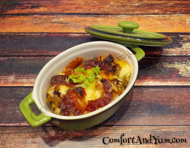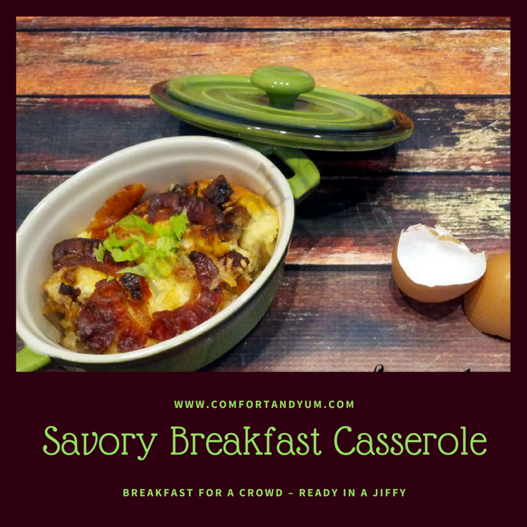 The recipe as written will feed 4 hungry people. It is easily doubled or tripled to accommodate a larger group. If I know I’m feeding a large group, I’ll make this casserole the night before, refrigerate it and bake it first thing in the morning so everyone wakes up to the aroma of “Sunday morning” … you know what I mean (and fresh brewed coffee, of course)!